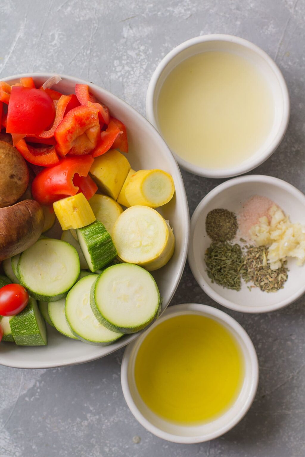 Prepare your vegetables in any combination you like and in a large bowl.